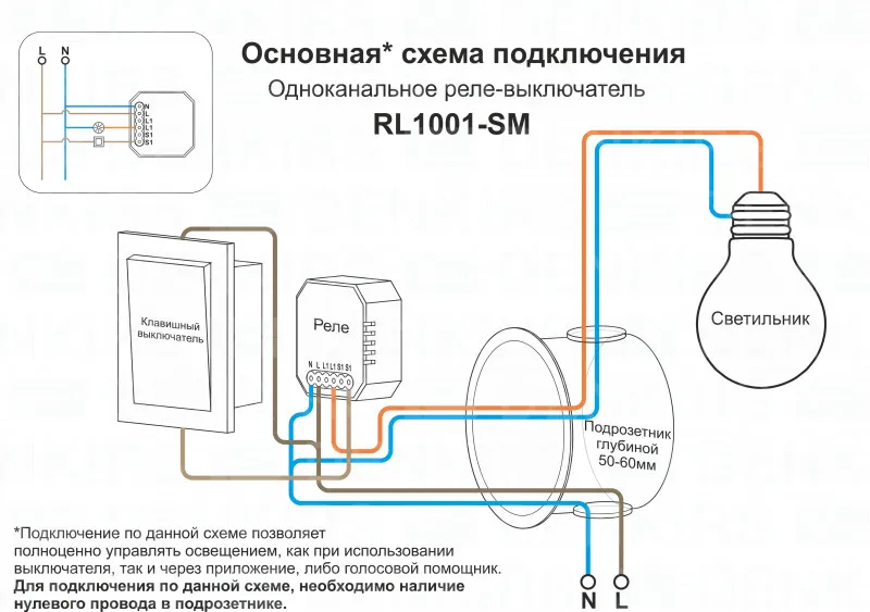 Wi-Fi реле-выключатель одноканальное Denkirs 1x2300Вт/250Вт для LED RL1001-SM купить в Калининграде по лучшей цене