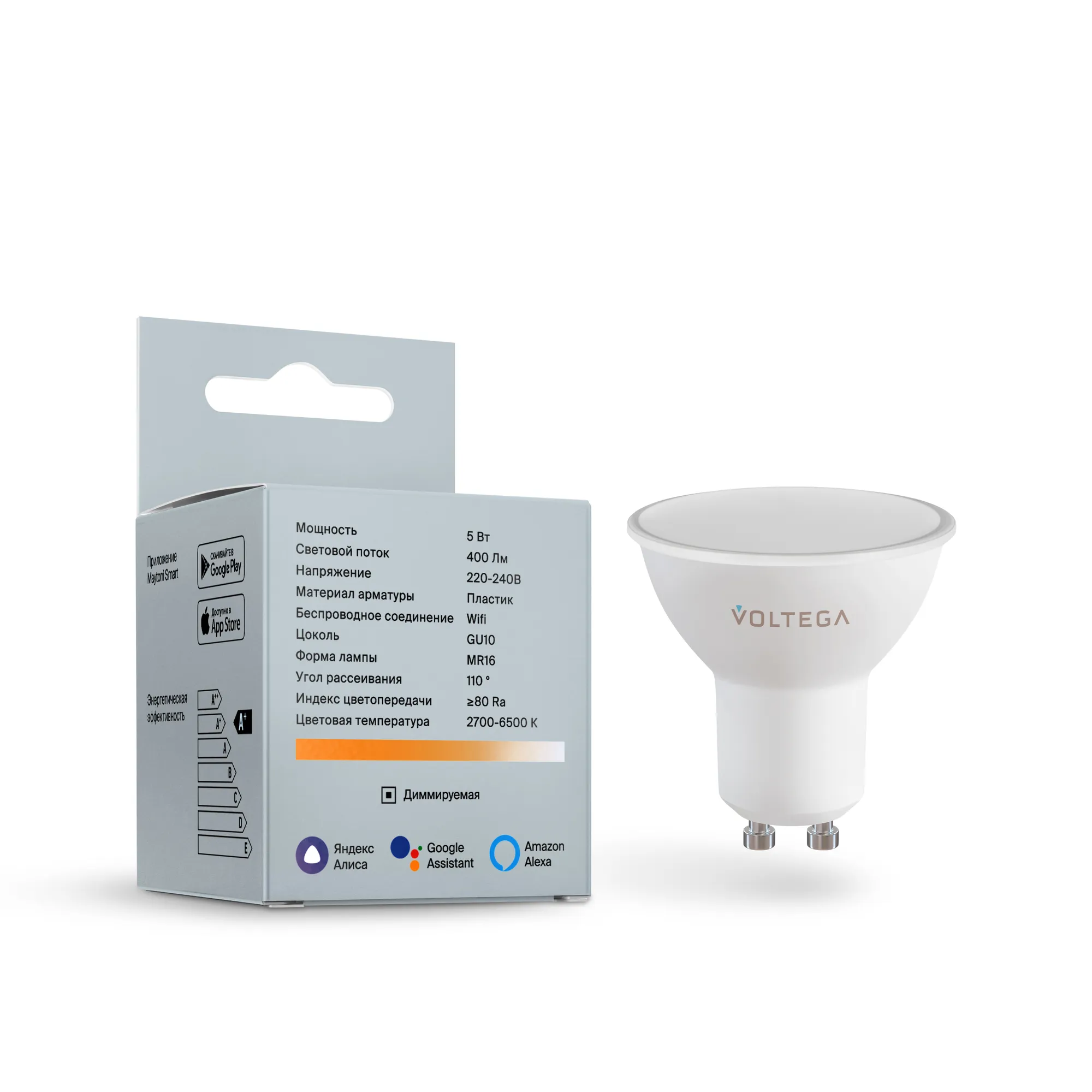 Лампа светодиодная диммируемая Voltega GU10 5W 2700К матовая VG-MR16GU10cct-WIFI-5W 2425 купить в Калининграде по лучшей цене