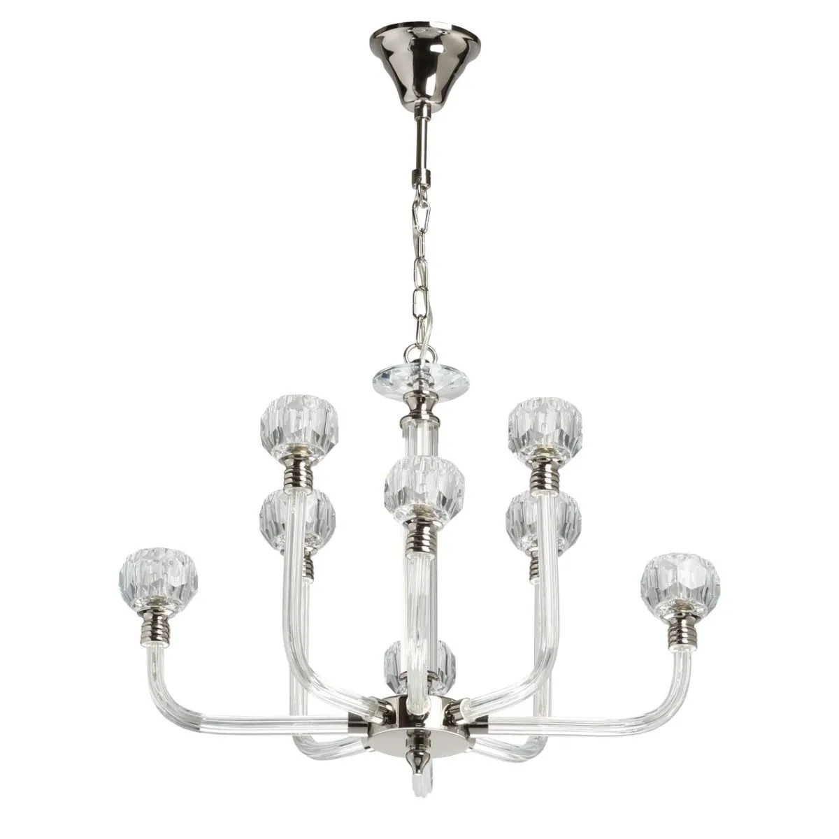 Основание/ металл/ никель Плафоны/ хрусталь/ прозрачный Декор/ хрусталь + стекло/ прозрачный
