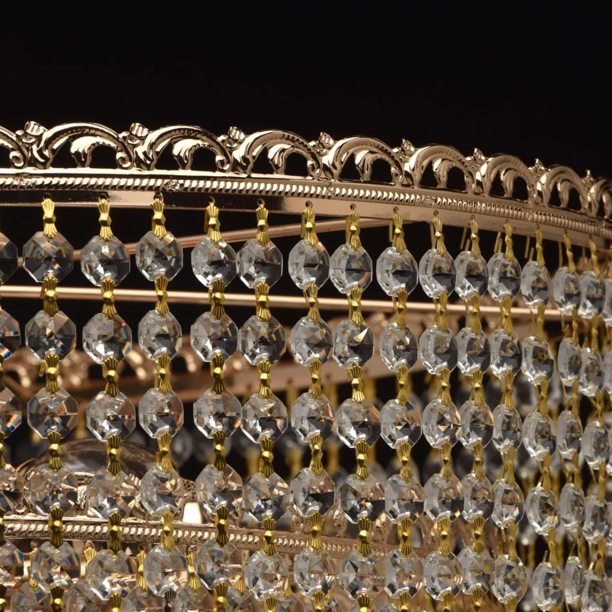 Металлическое основание цвета французское золото. Декор - подвески из хрусталя.