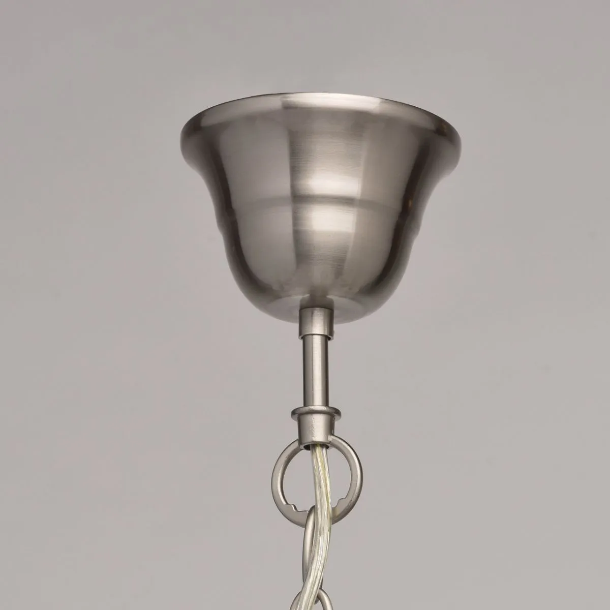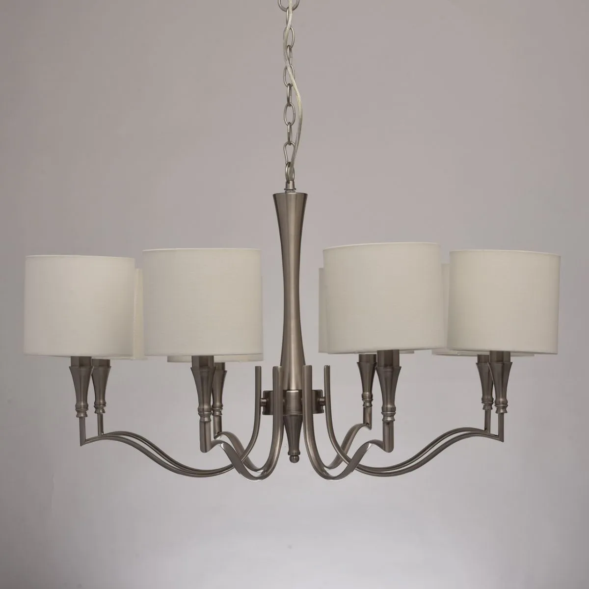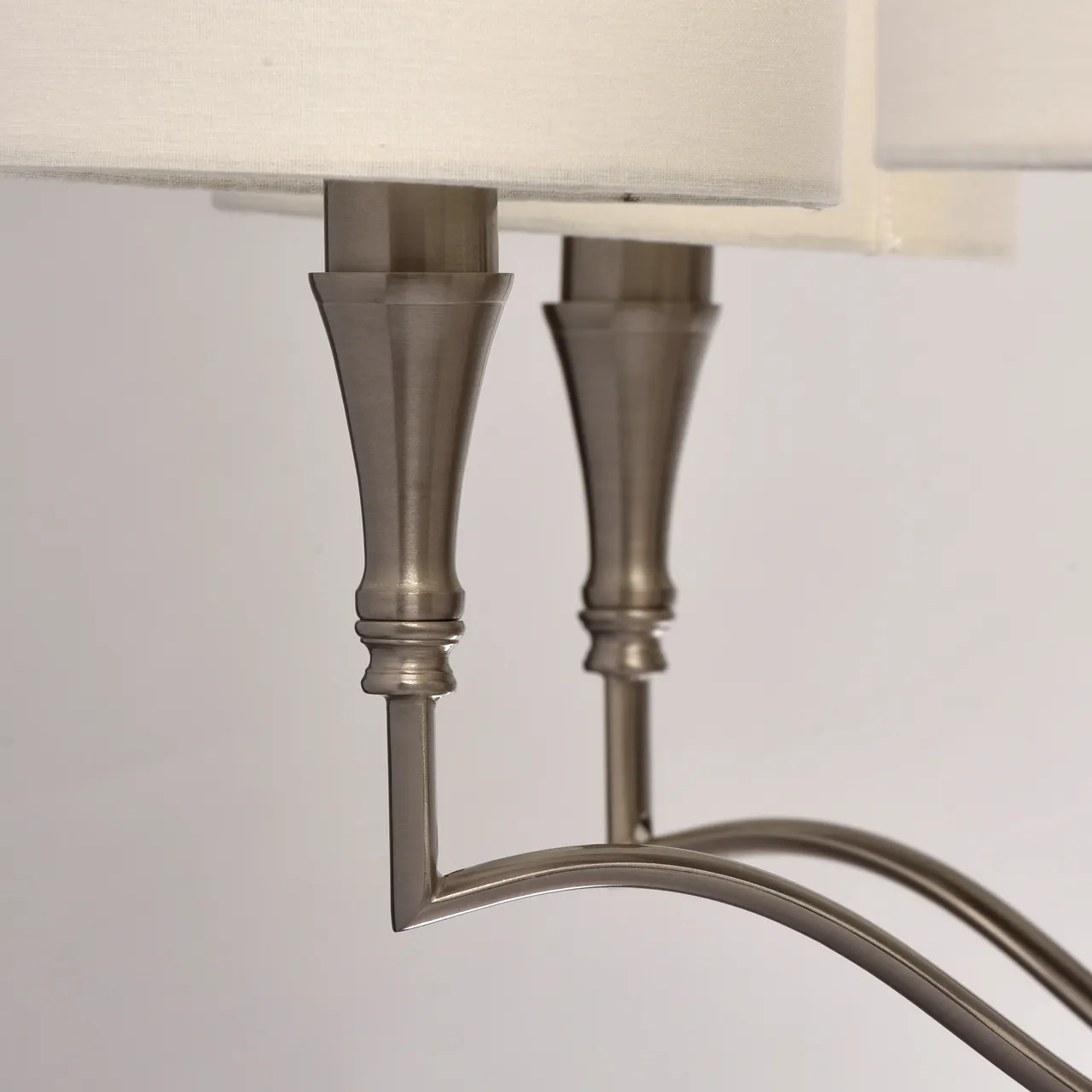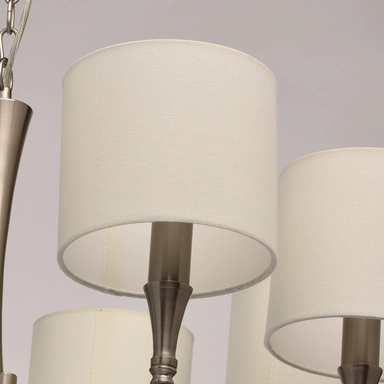 Металлическое основание цвета сатинового никеля. Абажуры -текстиль сливочного цвета